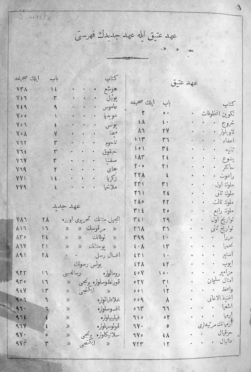 ʿAhd-i ʿatîk ve ʿAhd-i cedîdin Fihristi