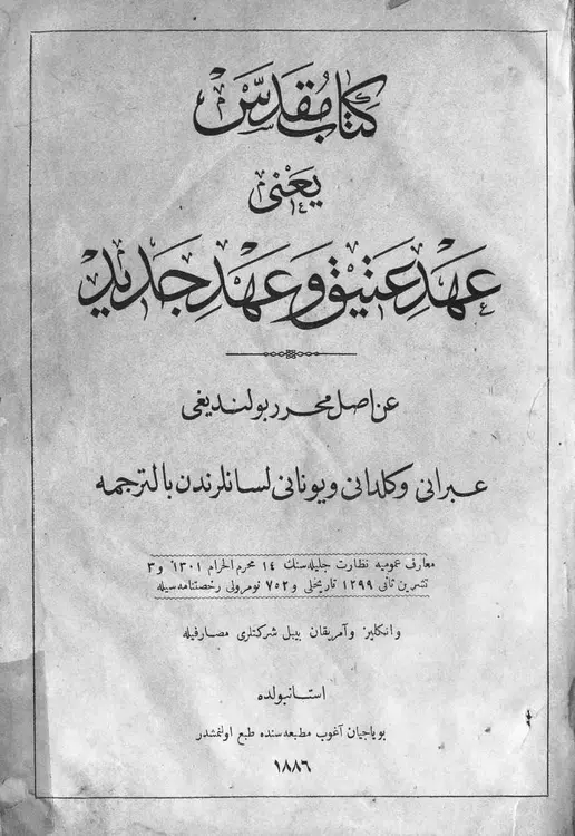 14 Muharrem el-Harâm 1301 ve 3 Teşrîn-i Sânî 1299 tarîhli ve 752 numaravlı ruhsatnâmesiyle ve İngiliz ve Amerikan Baybıl Şirketleri masârifiyle